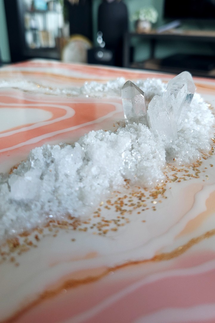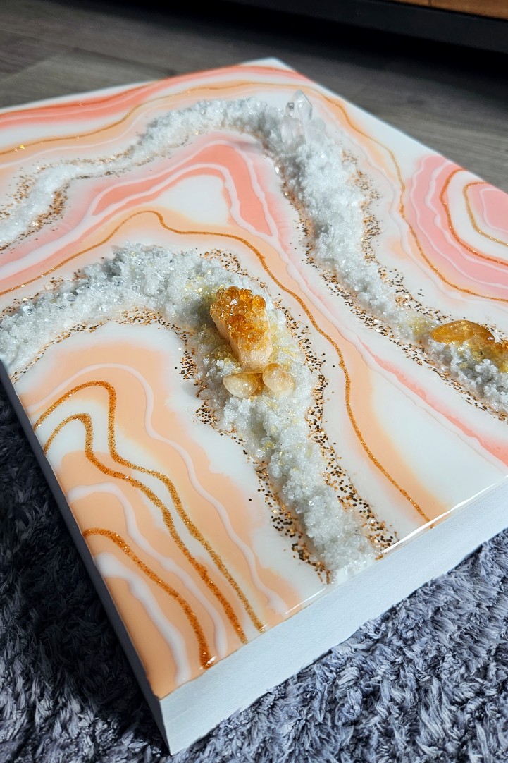 Elevate your home decor with our high-quality handmade resin wall art, featuring real rock crystal points and different citrine crystals. This piece is meticulously crafted to showcase the natural beauty and positive energy of these stunning gemstones. Perfect for adding a touch of elegance and serenity to any room.